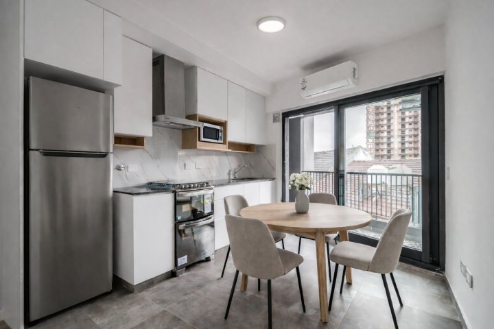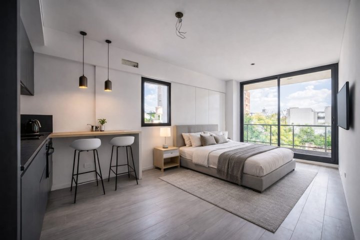 Monoambiente a estrenar muy luminoso, con doble vidrio. Cocina americana eléctrica equipada. Gran conectividad, pisos de porcela...