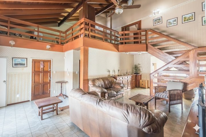 Casa en dos plantas de cinco ambientes con quincho, patio en primer piso, jardín con pileta y cochera para ocho autos. Disposici...